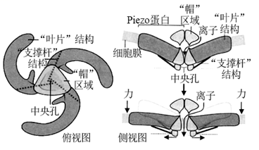 蛋白组成“螺旋桨状”三聚体,能直接响应细胞膜上的机械力刺激并介导阳离子进入细胞。下图为